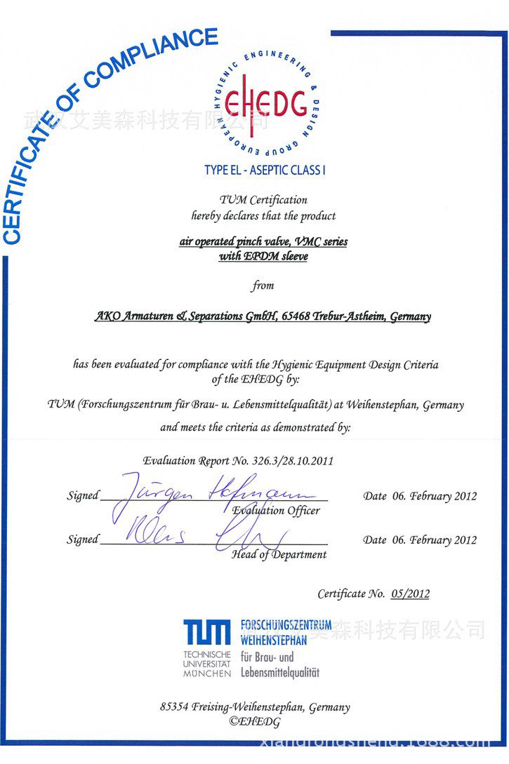 德国AKO VMCE系列管夹阀取得了EHEDG认证,该系列管夹阀采用了全新结构设计,具备如下特点: